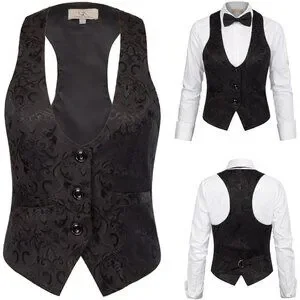Womens Waistcoat Vest Vintage Steampunk Dress Racerback Jacquard Jacket