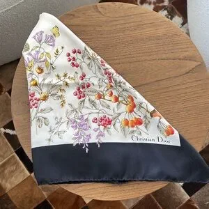Stunning RARE authentic Dior scarf. Large measuring approx 34β x 34β. Hand stitched rolled edges. Made in Italy. 100% Silk. Black border with inner ivory and floral design π¦ππ¦ββ¬