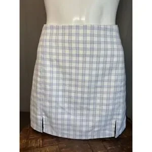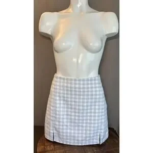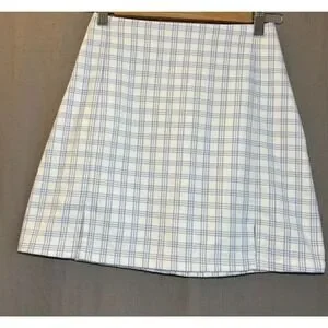 BRANDY MELVILLE Juniors Cute Soft BLUEWHITE PLAID CARA High Rise Mini Skirt