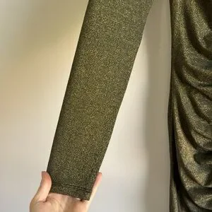 Veronica Beard "Elson" mini dress featuring a ruched front and back in a metallic rayon-blend High neckline Long sleeves Bodycon fit Hem falls above the knee Slipover style Rayon/polyester/Lurex® Hand wash Imported