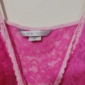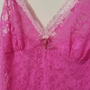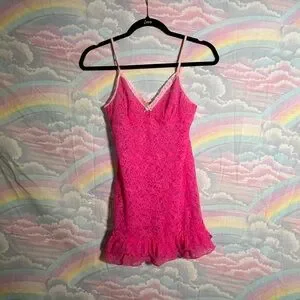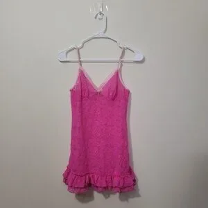 Victoria Secret pink entirely sheer lace dress with baby pink trim and ruffled bottom