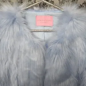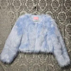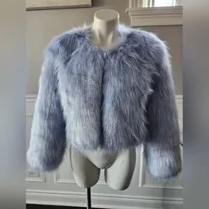 AZALEA WANG Blue Vegan Faux Fur Crop Jacket Coat Size L BRIDAL BACHELORETTE