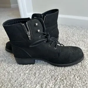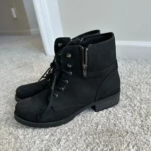 Stunning black booties, lace up, ribbed sock like lining for added comfort.