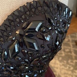 Bergdof Goodman in New York. stunning sweetheart mini dress with gorgeous beaded glass on top. Beautiful material. Stunning!! This dress is soooo stunning, classy, elegant, and just so lovely and unique. Beautiful satin like feeling on bottom and stunning beaded bustier like on top. Breathtaking!