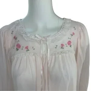 Miss Elaine Vintage ILGWU Pink Nylon Floral Embroidered Nightgown Small S