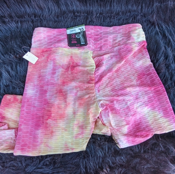 High-Rise legging, textured, ruched seam, NWT, beautiful pink and yellow pastel