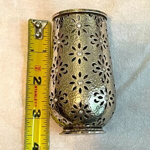 Classic Brighton quality. Mini silver plated vase with decorative sparkles on the floral design. See photos for dimensions.