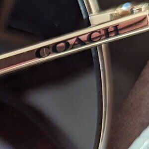 Coach aviator sunglasses, gold frame, with case, biker and cleaning cloth. Case lining has damage but still in great condition, see last pic.