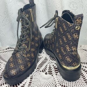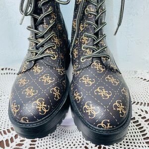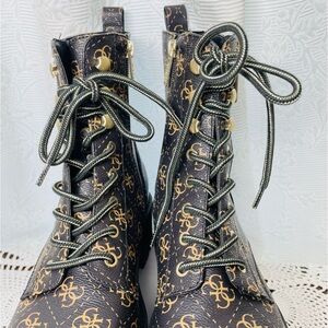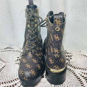 These Guess ankle boots are NEW for women with Logo and Brown Sole, they have closure and laces, size 10M, please review the photos for more information.