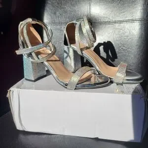 Gorgeous glam shoes. Silver, shiny, and waiting for your fabulous event.Size 6.5