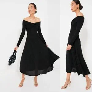 Moon River NEW Black Off the Shoulder Long Sleeve Jersey Knit Maxi Dress Size M