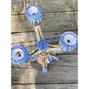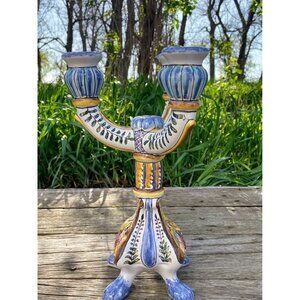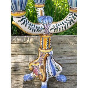 Vintage Hand Painted Portugal 3 Arm Candelabra Candle Stick Holder