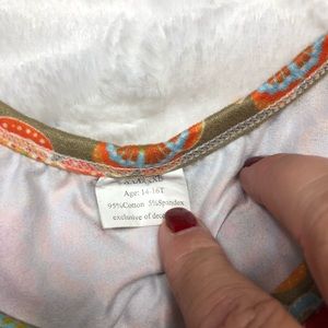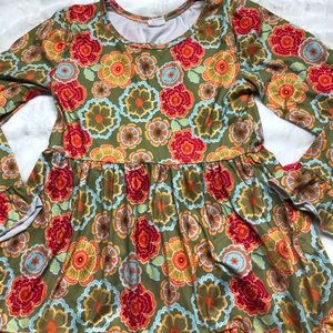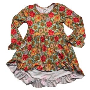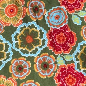 Oranges, reds, and greens in bright colors, fall florals. Ruffle trimmed bottom. High front, low back. Size 14. Ruffle around wrist. Great top with leggings. Colors may vary slightly in person. Your satisfaction is very important to me, please let me know if you have any questions before purchasing. Thank you for visiting my closet and Happy Poshing!