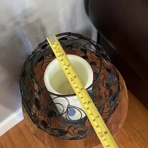 The metal part is rubbed bronze and lucks like peacock tail. It is absolutely gorgeous, but don’t have a use for it, since we recently did some renovations and re-decoration of our home.
