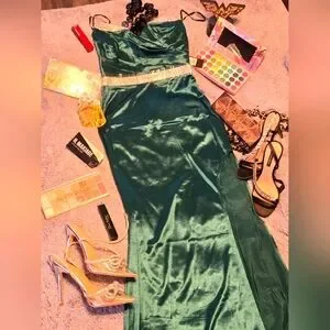 beautiful Emerald long dress with finest touch in diamonds. size Small is waiting for you for any special occasion or event. you will look fabulous 🫠