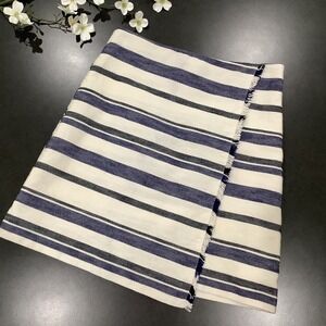 Ann Taylor LOFT Woven Cotton Blanket Short Wrap Skirt Stripes Fringe