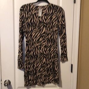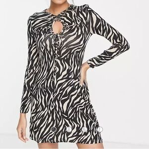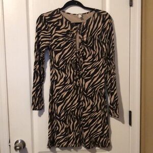 river island zebra print long sleeve minidress w/keyhole neckline SZ 8 (UK 12)