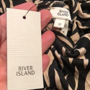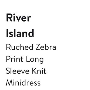 NWT river island ruched zebra print long sleeve minidress w/keyhole neckline SZ 8 (UK 12) - Black/Tan. Made in Morocco. Soft & Lightweight.