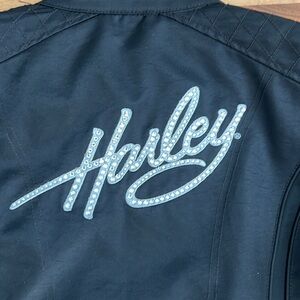98445-10vw water resistant, Black Nylon, 100%poly-mesh lining. Zipper Front, cuffs and gussets on lower back. rhinestone embellishment on back.
