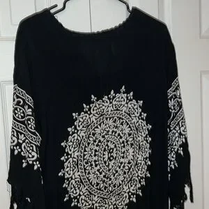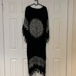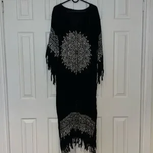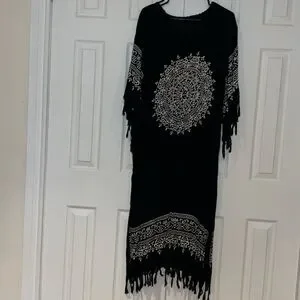 🖤🤍Comfy cotton summer vacay vibes cover up dress with fringe sleeves and hem details approx measurements preloved good condition photographed same day shipping from smoke free home
