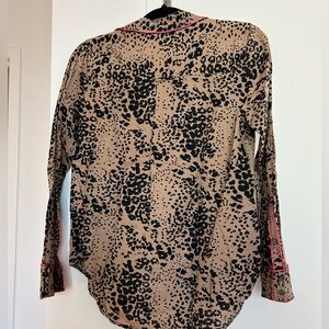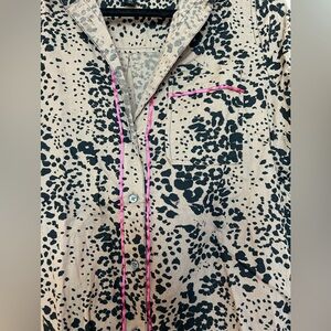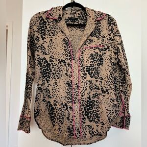 J. Crew Linen Leopard Print Button Down with Pink Contrast Piping