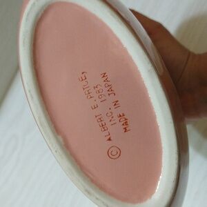 Vintage 1980s Pink Mauve Vase with Colorful Flower Basket Motif Albert E Price