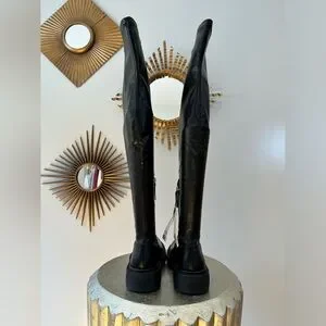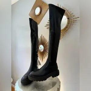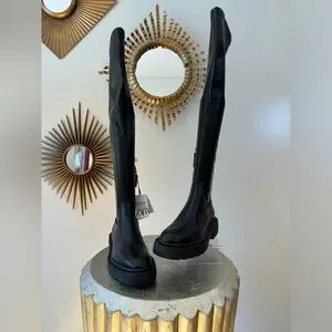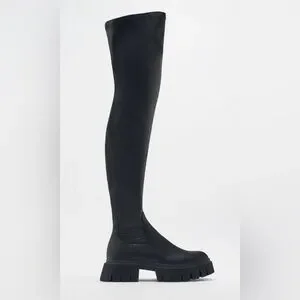 ZARA - Black Over The Knee Lug Sole Boots
