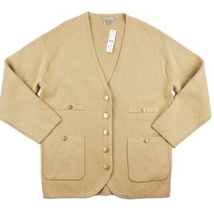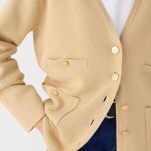 New JCREW Size XS Long V-neck Sweater Blazer in Light Khaki $198 BX466