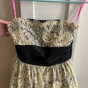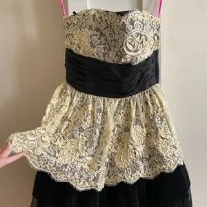 Vintage Betsy Johnson Strapless Lace Prom Dress Black and White, size 4