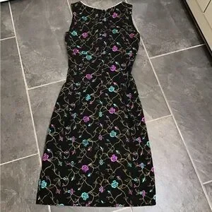 Nicole Miller Vintage Floral Midi Dress Embroidered & Lace Details
