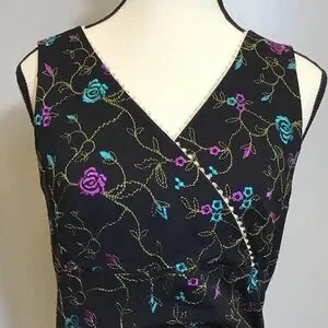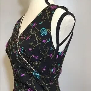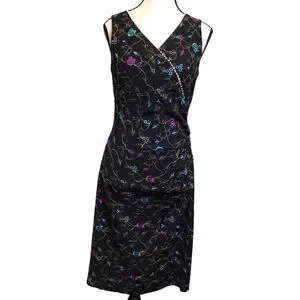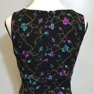 Vintage 90s Nicole Miller Floral Midi Embroidered Lace V-Neck Black Dress Size 8