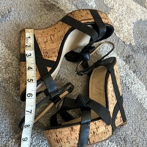 🌹Pre-Loved Christian Louboutin Miss Cristo 140 Cork Wedge Leather Heel. These shoes are surprisingly Incredibly Comfortable‼️ Shoe has a slightly higher than 5" heel and 1.5" platform and is in relatively great shape considering their age. I did have my cobbler add sole protection as the leather on bottom wears easily. *see photo of shoe bottom. Made is Spain is still visible although protectors covered the CL logo. It is difficult to let these wedges go, as they were my favorite shoes -(my Go-Tos)- for a long time now. They look great with any dress and slacks as well. Great summer shoe!🌹 Size 38 or US7.