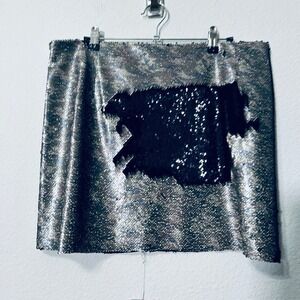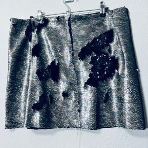 Free People Camo Silver Sequined Mini Skirt Size 12 New