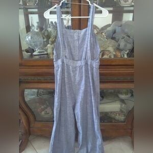 THESE ARE SO ADORABLE, MY FAVORITE TYPE OF CLOTHES. PIN STRIPED BLUE AND WHITE WITH WORKABLE BUTTONS IN FRONT. THE WAIST HAS ELASTIC IN THE BACK. THE LEGS ARE A WIDER OPEN LEG, SO CUTE.