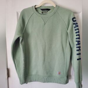 Carhatt Womens Relaxed Fit Midweight Crewneck Block Logo Sleeve Graphic Sweatshirt Size: Small