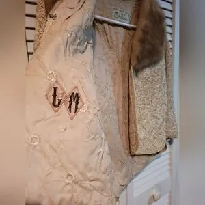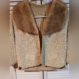 original early 1960's, fur collared, cream jacket. think Mad Men. excellent condition with original label and monogramed lining. super flattering 3/4 length sleeves. obvious age, but no structural flaws. size xs/s