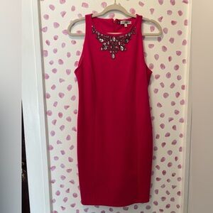 Women's Jennifer Lopez Embellished Ponte Sheath Dress Size 6in Electric Magenta