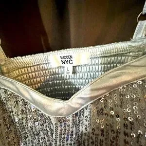 Ladies Madden NYC Tank Top, Size Large,Silver sequins,PARTY DOWN