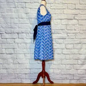 Anthropologie Lithe Blue & White Silk Blend Embroidered Fit & Flare Dress