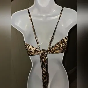 Leopard print hankerchief top. Tie back.