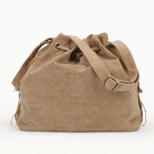 NEW Tan Fringe Bag Bucket Purse Drawstring Pockets Apricot