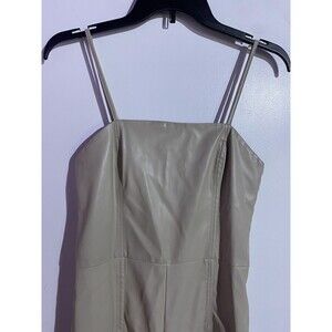 Zara Jumpsuit Small Beige Faux Leather Adjustable Straps Party Summer Tan