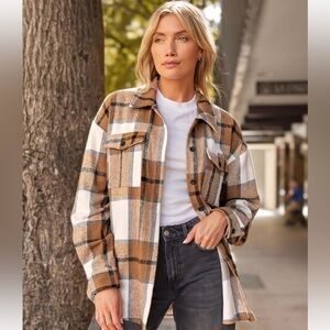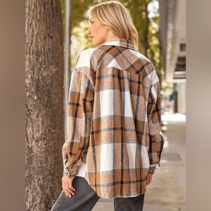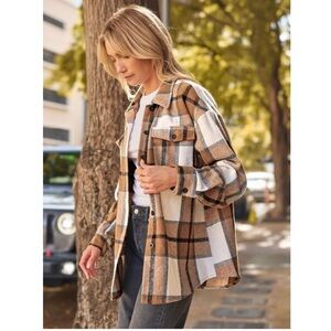 Feature:It features soft fuzzy fabric, front button closure, and mid-weight feel for keeping you warm all day. It'll be the prefect addition to your wardrobe. Two buttoned chest pockets / long sleeves with button cuffs / plaid pattern / loose fit / collared.