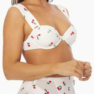 weworewhat cherries claudia swimsuit top and low rise bottom size large