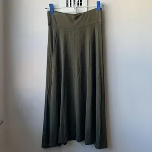 In good condition. This midi length skirt is so soft on the skin. Feels like a jersey material. Has a stretchy waistband. Easy slip on skirt with no hard wear. Bouncy & flowy. Waist: 12.5”, Length: 29.5” coming from a pet free and smoke free home. Bundle and Save!