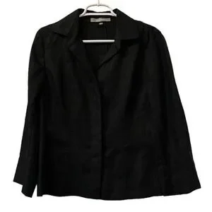 Ellen Tracy Women's Size 6 Black 100% Linen Lightweight Button Up Jacket