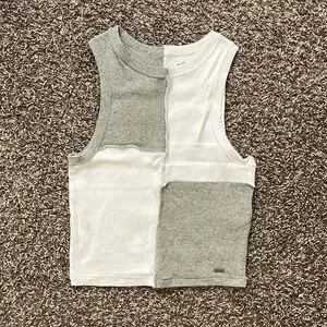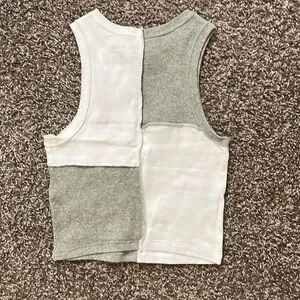 Perfect condition! Grey and white patchwork tank top. Cropped fit, high neck. More photos available upon request.