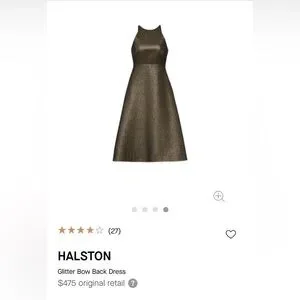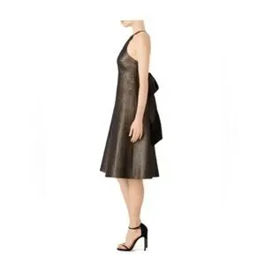 NWT Halston gold jacquard, back glitter bow dress Size 2