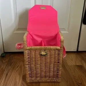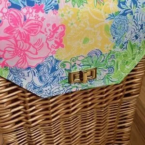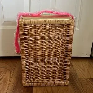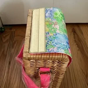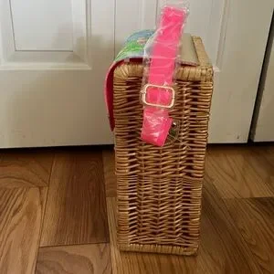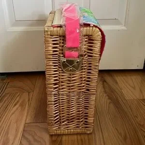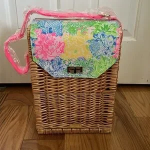 New, Lilly Pulitzer Whicker Wine basket. Holds two bottles of wine with an adjustable strap.