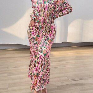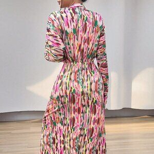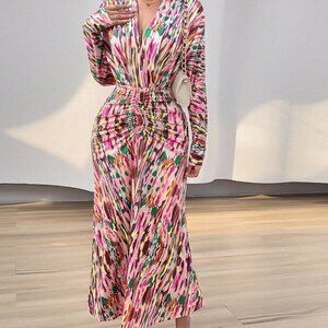 Multicolor Elegant Women's Full Print Deep V-Neck Dress